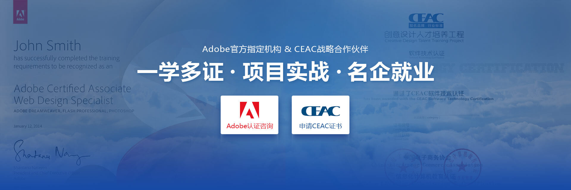 Adobe作为设计类软件厂商,其证书属于设计师认证,达内为Adobe授权培训中心。