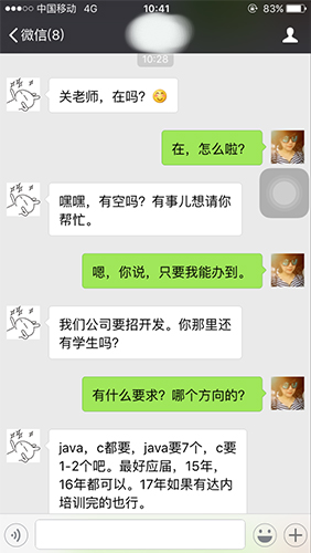入职后遇到难题怎么办?我们每月一次求职训练营、老师微信QQ随时在线帮你解决,助你升职加薪。